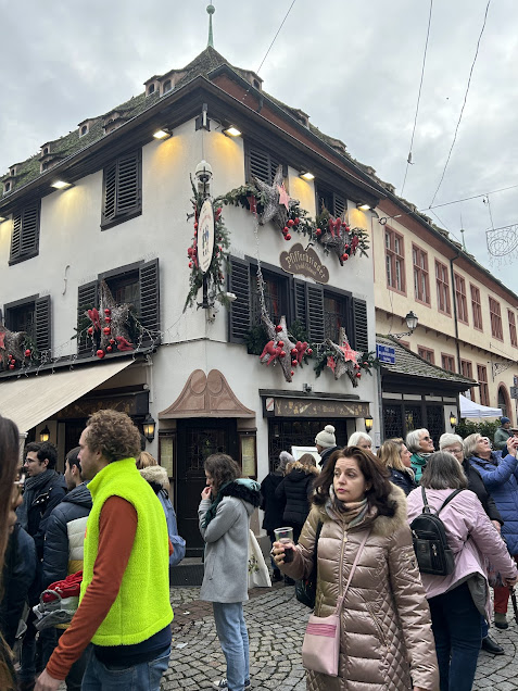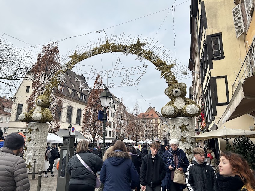 As I walked through La Petite France, the half-timbered houses glowed softly along the canals, their reflections dancing in the water below. Strings of lights stretched across narrow streets, and the scent of mulled wine, spices, and baked goods lingered in the cold air. People weren’t rushing. They were strolling. Talking. Laughing. Lingering. It felt like everyone collectively agreed to move a little slower.